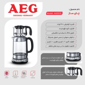 - ظرفیت کتری ۱٫۷ لیتری و قوری ۱٫۰ لیتری